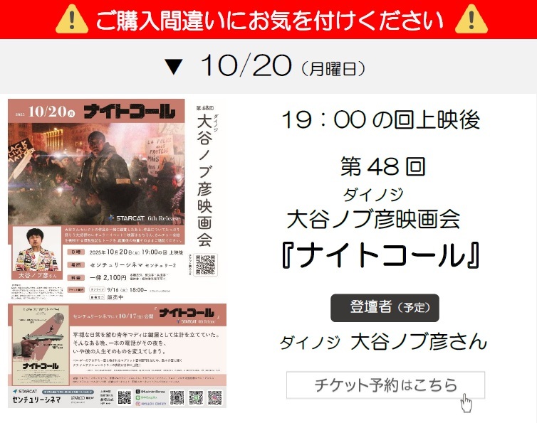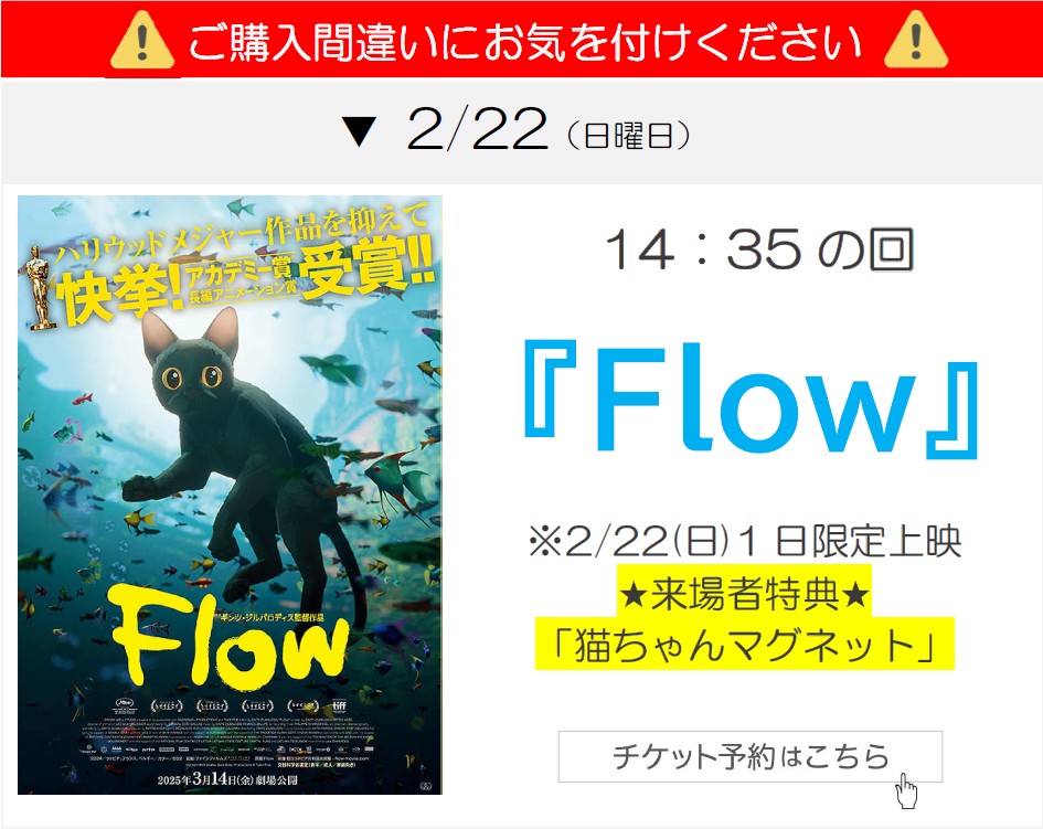 作品名・鑑賞日・上映時間・劇場 をお間違い無いように確認の上ご購入ください。また、発熱、咳などの症状がある方は、体調を最優先いただき、ご来場を控えていただきますようお願いいたします。
